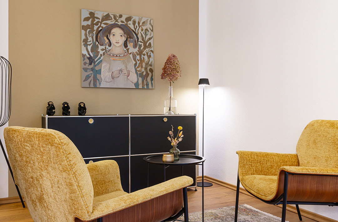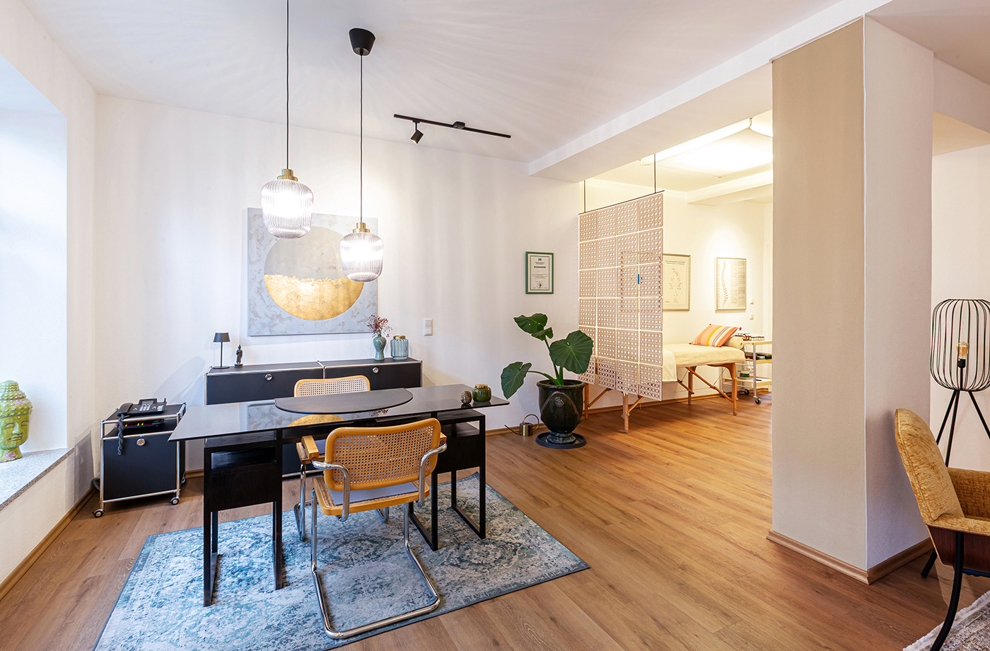 Das warme, gedämpfte Licht wirkt beruhigend. Fotos für Heilpraktiker dürfen dabei helfen Stress abzubauen und in eine ruhige, warme Umgebung einzuladen.